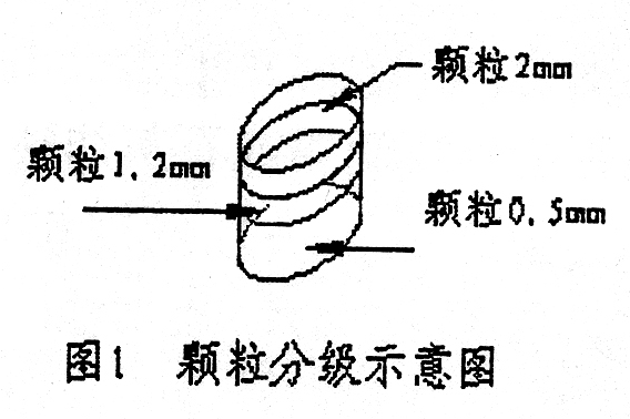 現(xiàn)場使用的分級篩的篩孔分別為2mm、1.2mm和0.5mm三種,篩分時(shí)把篩孔尺寸最大的篩合放最上層,篩孔尺寸最小的篩合放最下層,如圖1。其底合專為篩分時(shí)裝接細(xì)粉之用。